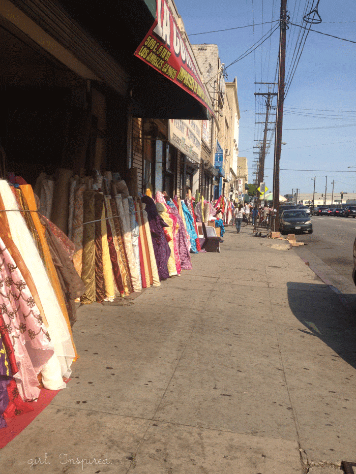 Hello!! I’m slowly recovering from the end of the school year and Addie’s birthday, coupled with returning from the most overwhelming and wonderful fabric shopping weekend ever! How are you? I finally got all of my bags from Fabric Weekend unpacked, my fabric mostly washed, and all of it stashed someplace other than on top of my sewing table. I have yet to cut into any of it, but I’m pretty happy just looking and petting! I’m excited to share some pictures and report on the weekend a bit while it’s still fresh. If you haven’t ever been shopping in the Los Angeles fabric district, maybe this will give you a few ideas or pointers should you go! I should also add that, although I carried my camera all the way to L.A., I didn’t pull it out a single time, so I have a lot of phone pics and they’re mostly all of fabric. But I swear I was with so many wonderful, talented ladies who share a love of fabric, sewing, and blogging. The social aspects of the weekend were completely incredible and inspiring!