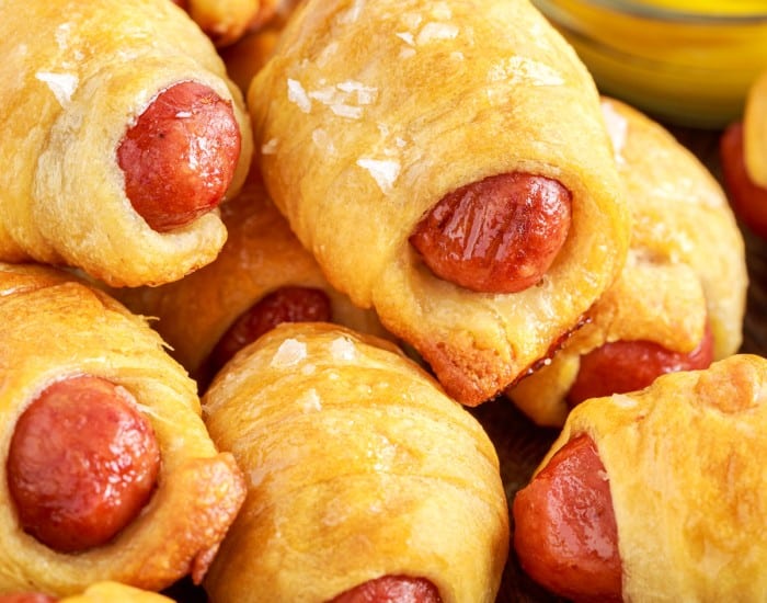 This Lil smokies pigs in a blanket recipe makes the perfect appetizer for any occasion, including a weekend at the house! Mini cocktail weenies are wrapped in a buttery crescent roll and topped with sea salt that adds a nice contrast to