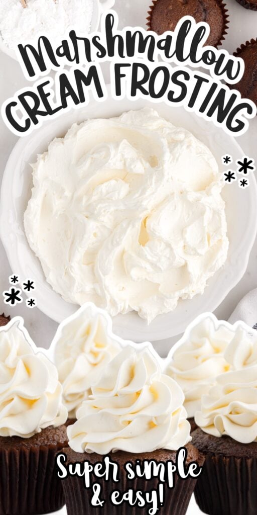 Marshmallow cream frosting is made using 4 simple ingredients and comes together in just minutes. The fluffy texture makes it perfect for any layer cake, chocolate cake, or cupcakes.