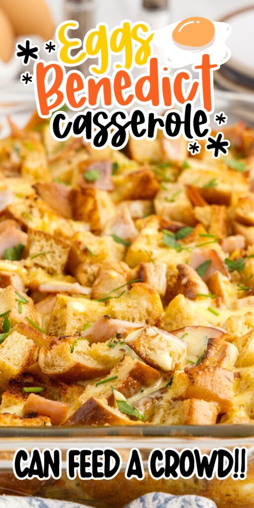 Overnight Eggs Benedict casserole goes well with fresh fruit and hash browns for a full-on breakfast or brunch recipe. We also like serving it as is, especially on holiday mornings or when feeding a larger crowd. Before serving, garnish with freshly chopped chives and/or parsley.