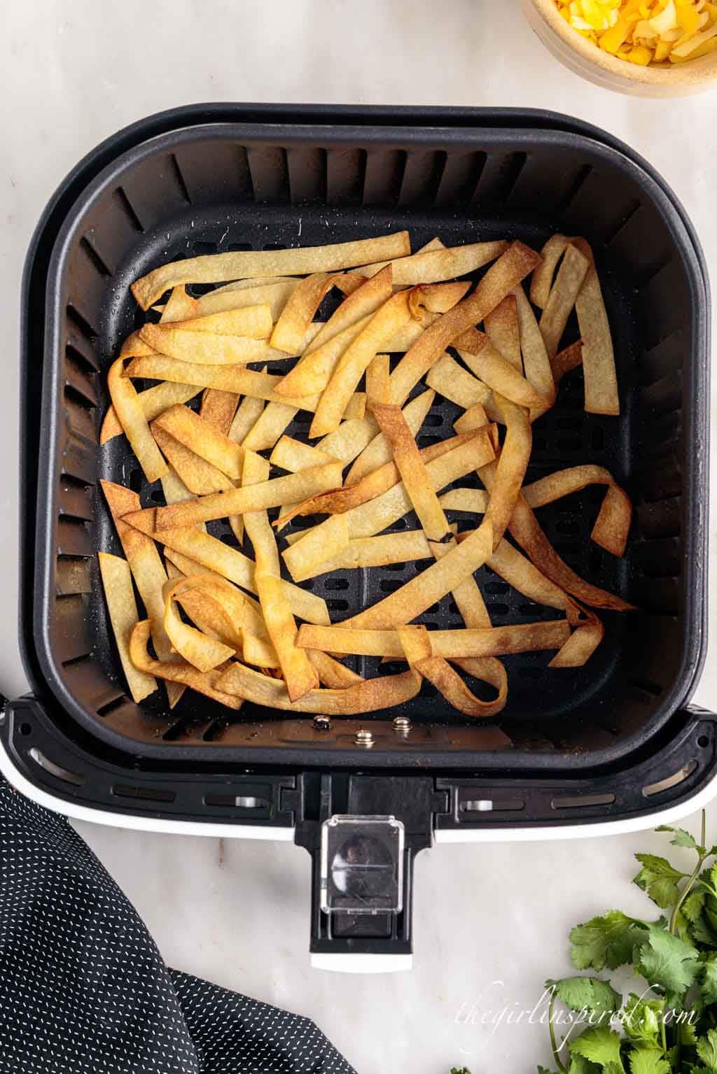 - If you want the tortilla strips to be crunchy, follow the directions for making them in the air fryer. Some like to add them raw and let them “cook” to soak up the flavors.