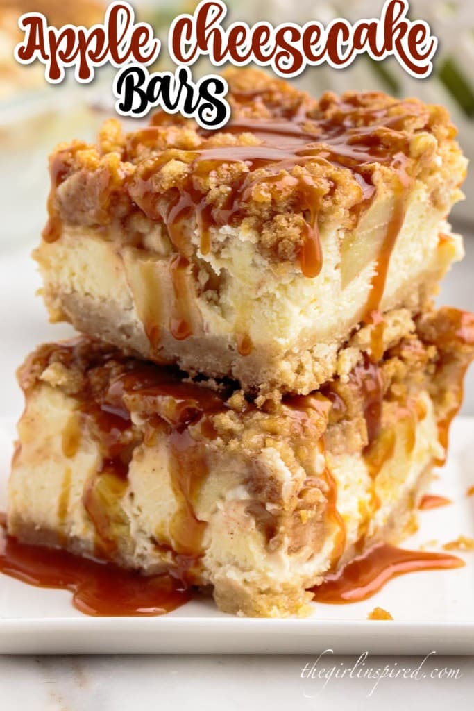 - Chill for at least 3 hours before cutting into bars and serving. Drizzle apple cheesecake bars with caramel sauce, if desired.