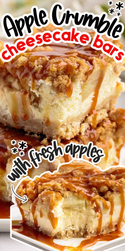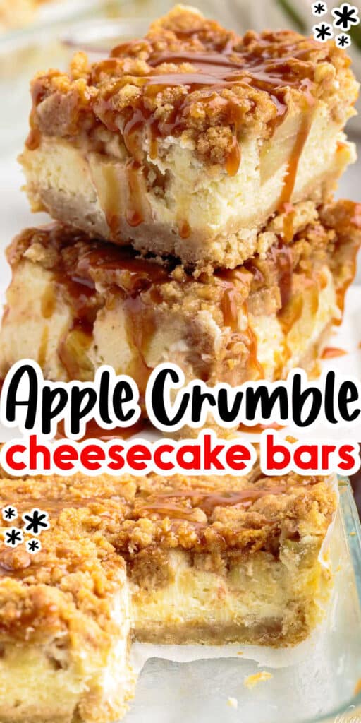 - Caramel apple cheesecake bars – we’ve added caramel to the top of the bars during serving. You can also drizzle caramel sauce over the apple filling layer before topping with the streusel.
