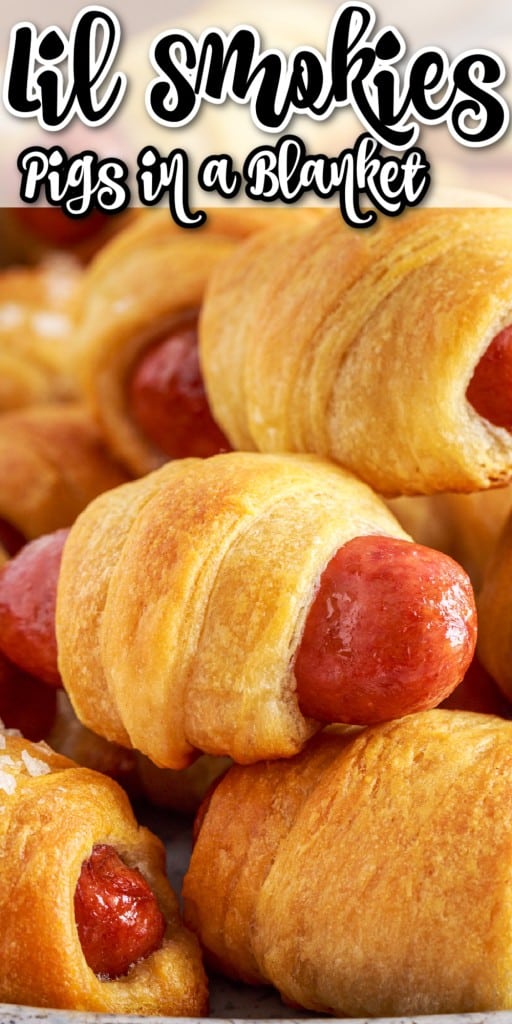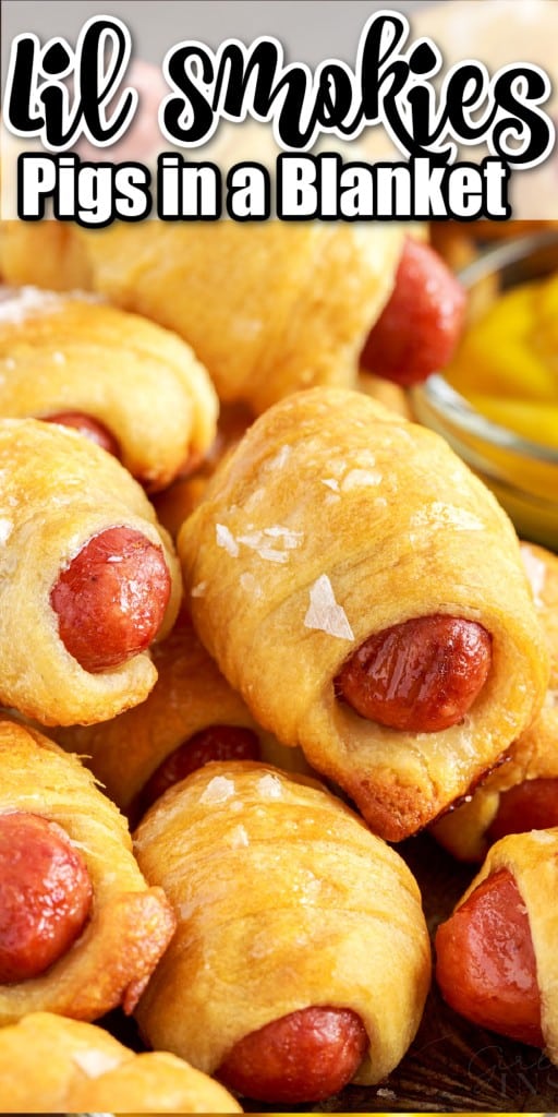 This Lil smokies pigs in a blanket recipe makes the perfect appetizer for any occasion, including a weekend at the house! Mini cocktail weenies are wrapped in a buttery crescent roll and topped with sea salt that adds a nice contrast to the sweetness of the bread. Each batch only takes 30 minutes to make!