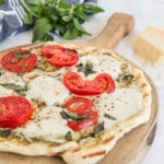Pesto can be made in a number of different ways with different ingredients. Some recipes use walnuts or almonds, spinach, or alternate cheese. This basil pesto recipe follows traditional pesto recipes with its pine nuts, garlic, parmesan cheese, basil, and olive oil. However, I think it gets a serious upgrade with the addition of the toasted goodness of pine nuts and the vibrant lemon flavor.