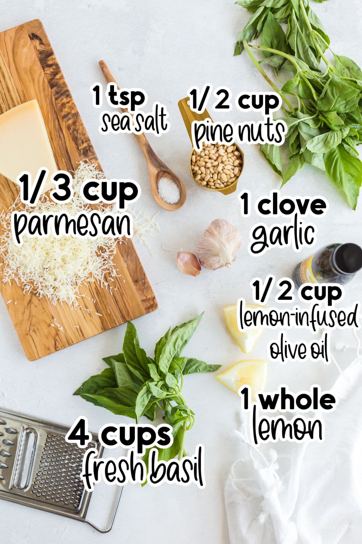 - Meyer Lemon Olive Oil: High-quality extra virgin olive oil serves as the base of pesto, providing a smooth texture and a fruity undertone. We discovered this Meyer Lemon-infused olive oil years ago and there’s no turning back. I have found different versions in my local grocery store, but my favorite brand, Sutter Buttes, is delivered to me on the regular.