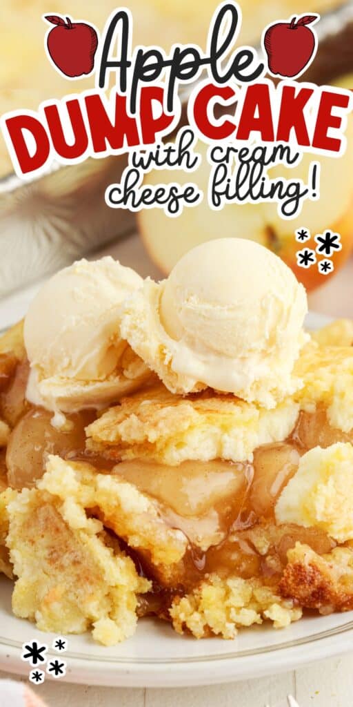 This apple spice dump cake goes great with a scoop of vanilla ice cream and a drizzle of caramel sauce.